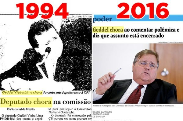 Um dos assuntos mais comentados nas redes sociais esta semana foi o choro de Geddel Vieira Lima, um dos homens de confiança de Temer. E não foi a primeira vez que as lágrimas do ex-ministro também acabaram no noticiário. Uma observação: desde o primeiro choro, o patrimônio de Geddel cresceu exponencialmente. Quando entrou na política, ele tinha um carro, um sítio, uma linha telefônica e o título de sócio do Iate Clube da Bahia. Hoje ele é dono de 12 fazendas, imóveis de luxo e tem muitos carros. Seguem quatro registro do choro deste gigante da política nacional: