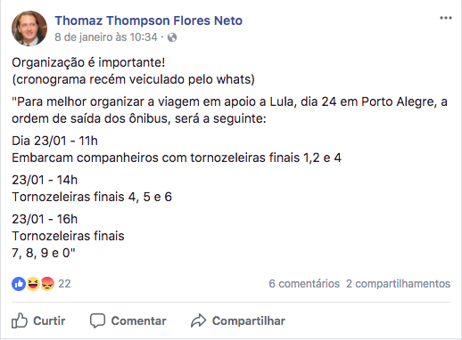 Primo de presidente do TRF 4 diz que “companheiros” do PT devem ir a Porto Alegre com “tornozeleiras”