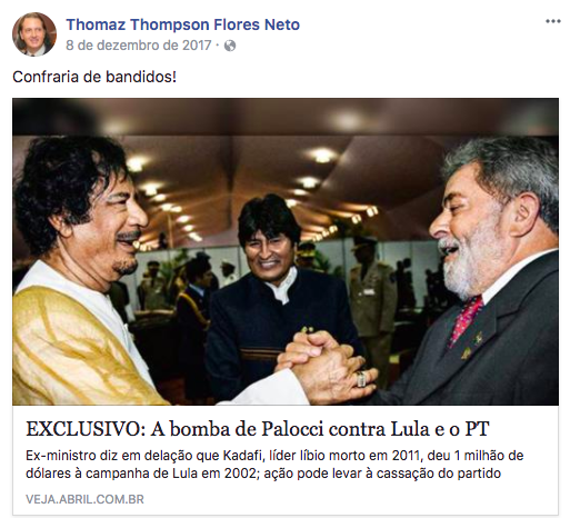 Thomaz Thompson Flores Neto, advogado tributarista e primo de segundo grau do presidente do TRF 4, Carlos Eduardo Thompson Flores Lenz, não esconde suas preferências.