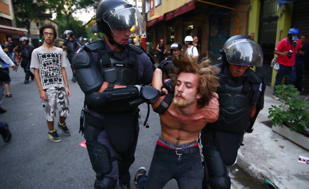 Os donos da casa foram conversar conosco. Eram evangélicos e iam começar o culto dali a poucos minutos. Eu fui olhar pela janela. Quando vi que o Choque havia saído dos bares e estava conversando com a imprensa, decidi que talvez fosse o momento de sair. Estava certo. Perguntei cordialmente a um PM como eu deveria sair dali. Ele, percebendo que eu estava no protesto, respeitosamente não respondeu minha pergunta. E pediu água mineral para o mesmo dono da residência onde eu estava.