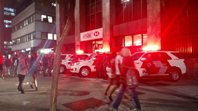 Às 17h, os grupos de manifestantes se reuniram. Ao mesmo tempo, a PM girou com suas vitaduras para interditar a rua de acesso à prefeitura, lotando de carros. A Tropa de Choque chegou pela lateral e se fixou na frente das Casas Bahia, antigo Mappin.