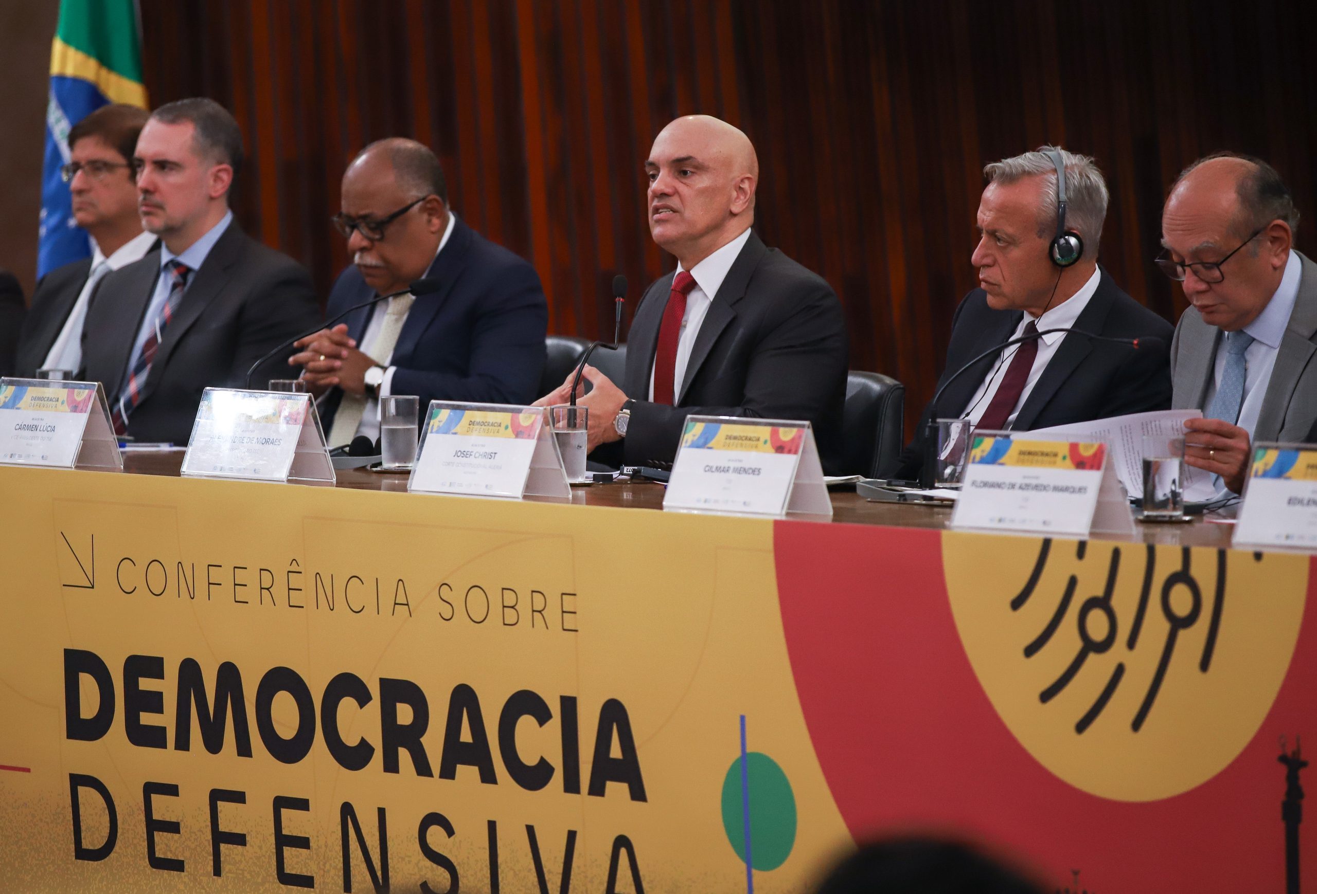 Moraes ainda afirmou que foi feita uma “lavagem cerebral” para desacreditar a democracia. “A partir de toda uma construção feita com base em premissas falsas, a partir de uma forte construção nas redes sociais, houve uma verdadeira lavagem cerebral em grande parte da população para desacreditar instituições, para desacreditar a democracia”, declarou.