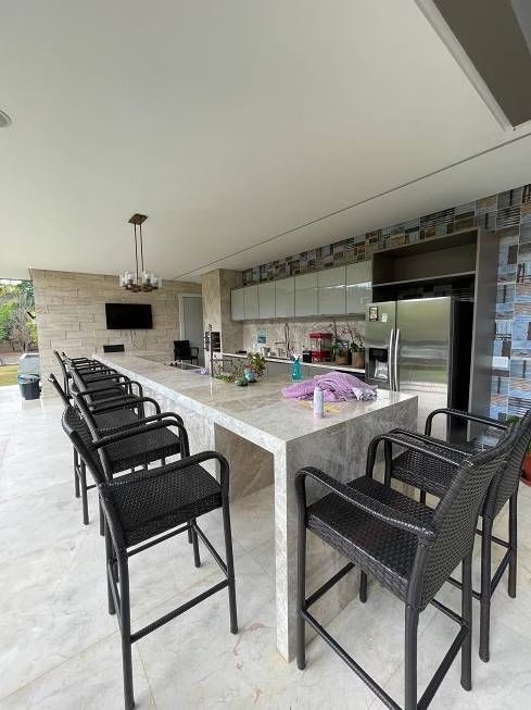 A residência foi anunciada com mobília completa e dispõe de diversos ambientes, como escritório, brinquedoteca, bar, duas varandas, poço semiartesiano, garagem e várias salas de estar.
