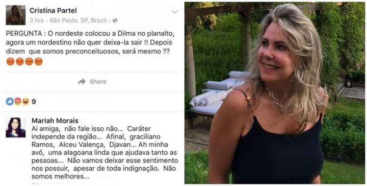 Cristina, caso você não saiba, escreveu o seguinte a uma amiga: “O Nordeste colocou Dilma no Planalto, agora um nordestino não quer deixa-la sair. Depois dizem que somos preconceituosos, será mesmo?”