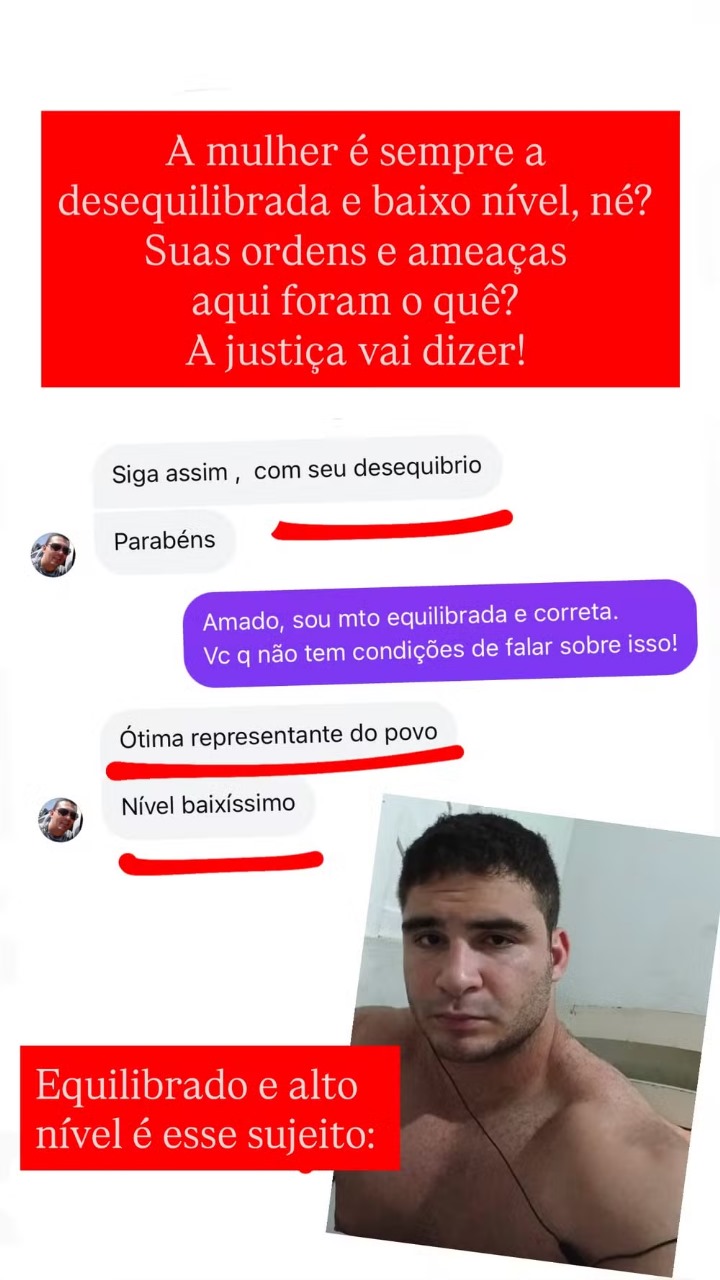 A vereadora rebateu publicamente. “Esse sujeito deu 61 socos em uma mulher e você me ameaça porque postei foto desse marginal? Quer me ameaçar pessoalmente? Estou às ordens!”, escreveu, afirmando não ter medo das tentativas de intimidação.