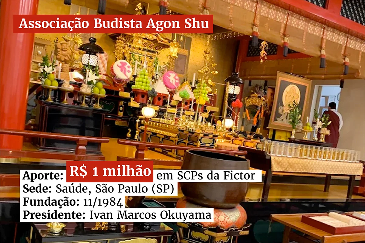 Entre os credores estão a Associação Budista Agon Shu, que investiu R$ 1 milhão, e a Associação Beneficente Freis Carmelitas Mensageiros, com R$ 630 mil aplicados por meio do CNPJ de uma loja ligada à comunidade.
