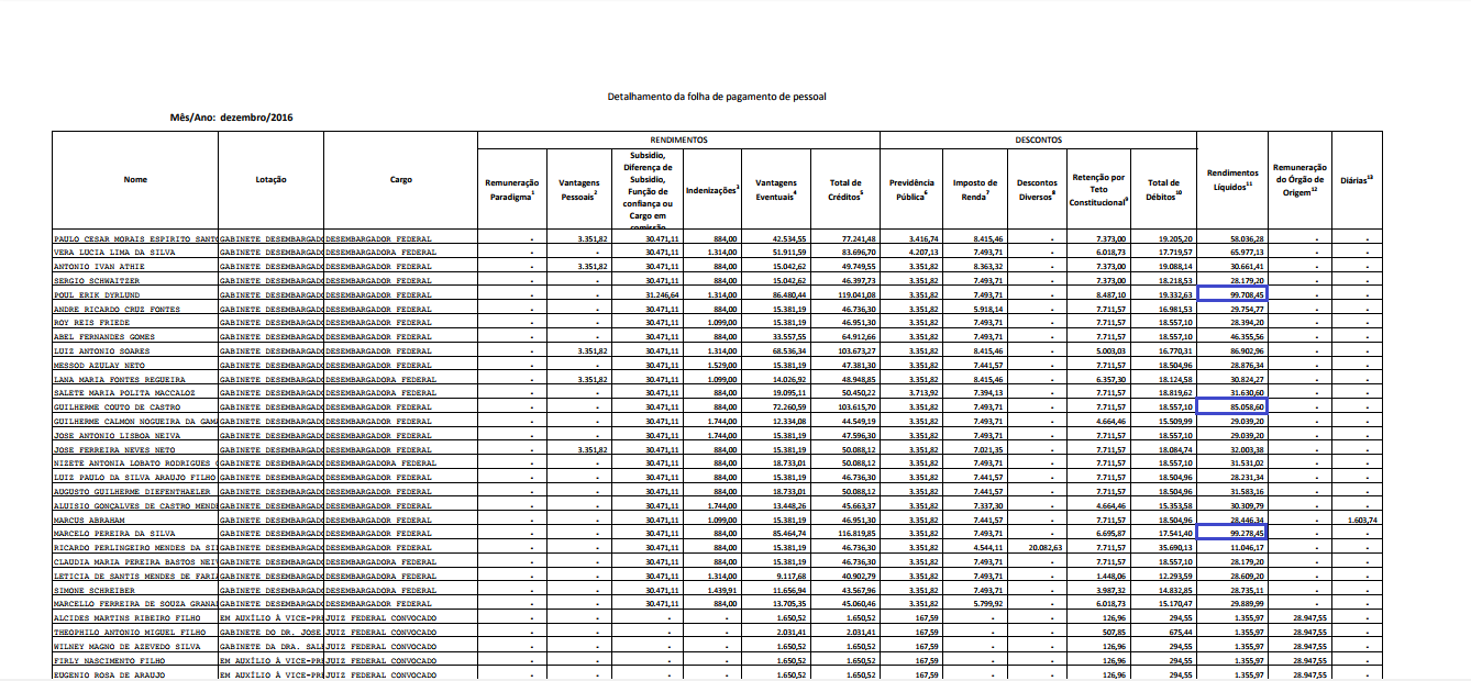 Em dezembro, o desembargador federal Poul Erik Dyrlund teve rendimento líquido de R$ 99.708,45. O que mais pesou no salário foram chamadas “vantagens eventuais” no valor de R$ 86.480,44.