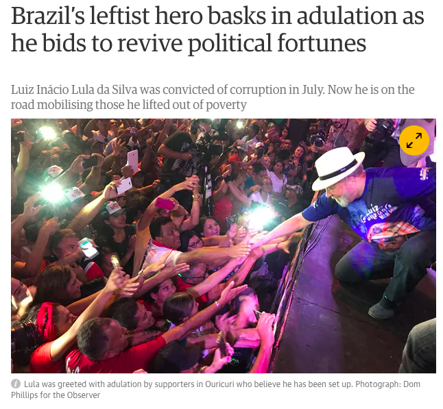 Robertson disse que Lula foi perseguido pelo juiz Sérgio Moro, que se tornou um herói por atacar a corrupção endêmica no país, especialmente entre uma direita emergente que ganhou volume durante os protestos pró-impeachment mas não apareceu para se manifestar quando apareceram acusações mais sérias contra Temer. No Brasil, o juiz efetivamente age tanto como árbitro como quanto acusador.
