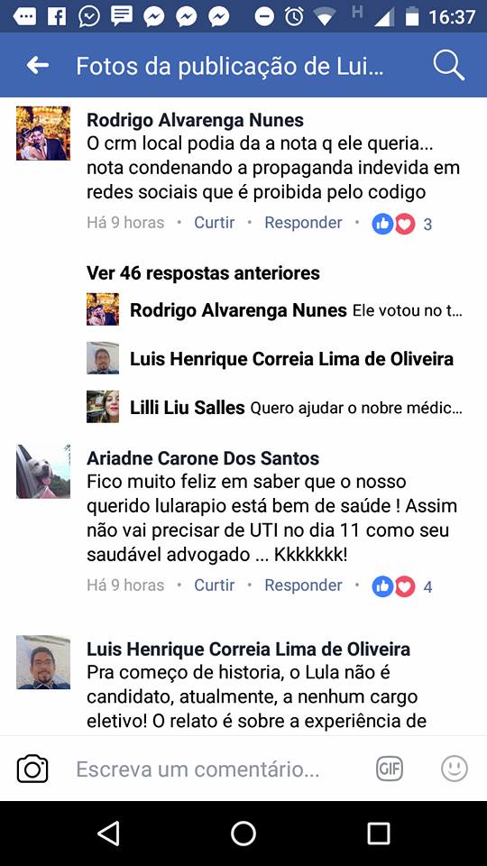 Os nossos doutores resolveram dar mais uma demonstração de falta de humanidade atacando o colega Luis Henrique Correia Lima de Oliveira, que escreveu em sua conta no Facebook um relato sobre a experiência de atender Lula no Ceará.