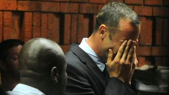 Pistorius chora ao depor