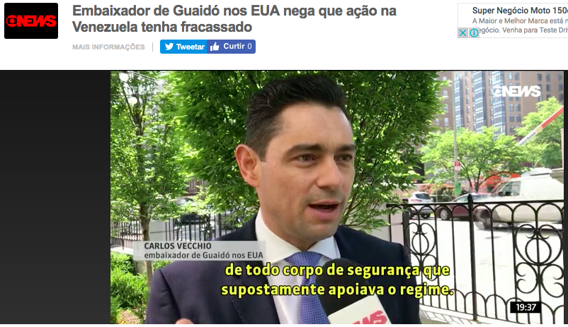A palhaçada para legitimar os golpistas inclui entrevistas com figuras como um “embaixador de Guaidó nos EUA”.