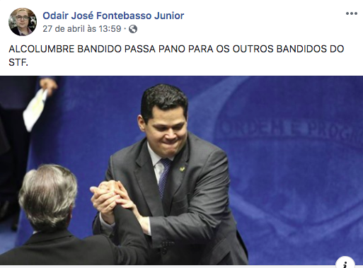 Em seu perfil no Facebook, exibe orgulhoso fotos do mito ao lado de montagens com Lula, Rodrigo Maia, entre outros.