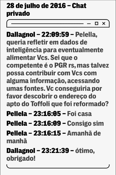 “Caros, a OAS touxe a questão do apto do Toffoli?”, diz ele, em 13 de julho de 2016, aos procuradores que negociavam com a empresa acordo de colaboração.