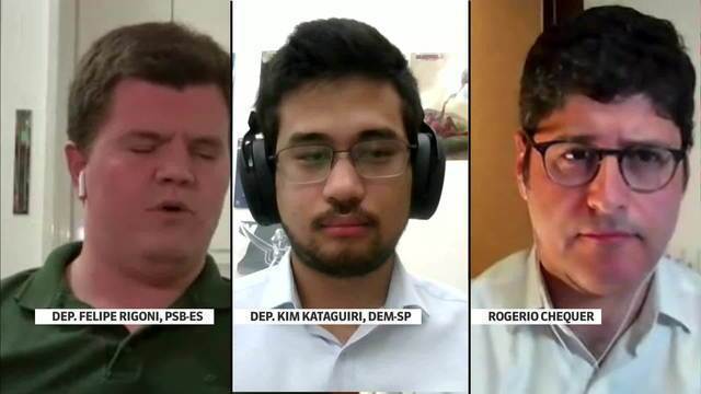 Felipe Rigoni, Kataguiri e Rogério Chequer na GloboNews: “debate”
