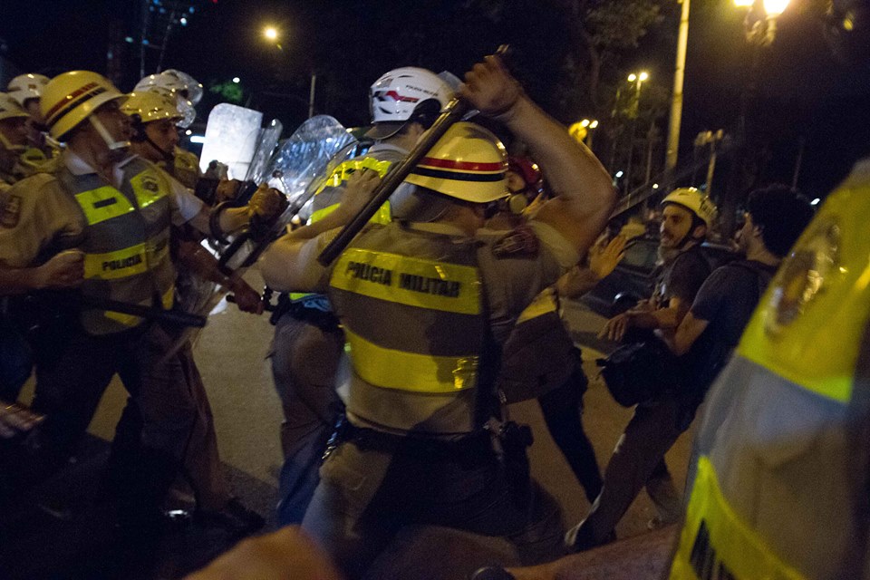 O objetivo está claro: afastar, cegar, calar a imprensa que está próxima e permitir (ou facilitar) a cobertura apenas das grandes redes, feitas a partir de seus helicópteros, com todo o distanciamento tanto físico quanto de compreensão que lhe são característicos. Quem não está por perto interpreta, inventa. E mantém o discurso simplista e tendencioso de vândalos versus ordem e progresso e seu reflexo no trânsito.
