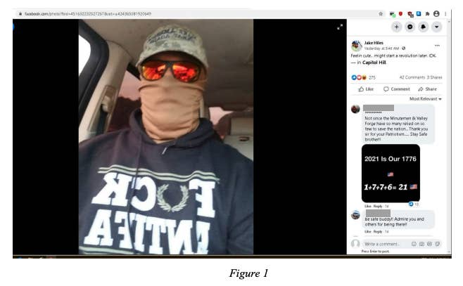 Post no Facebook de seguidor de Trump no motim no Capitólio dos EUA