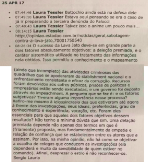 Em seguida, Tessler reproduz um texto de Sergio Laura, também procurador do MPF, no qual ele teoriza sobre a importância dos “fatores subjetivos” dos procuradores para o sucesso da Lava Jato: