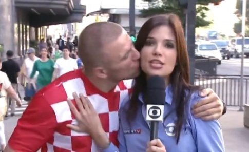 Essa situação lamentável já consta entre a nada modesta lista de pérolas machistas que vimos e veremos nos próximos 30 dias, ao longo da realização da Copa do Mundo aqui no Brasil (em tempo: não que ela não aconteça da mesmíssima forma em outros países). Enquanto estava realizando seu trabalho, em transmissão ao vivo, a repórter Sabina Simonato foi beijada por um torcedor croata anônimo, na calçada da Avenida Paulista.