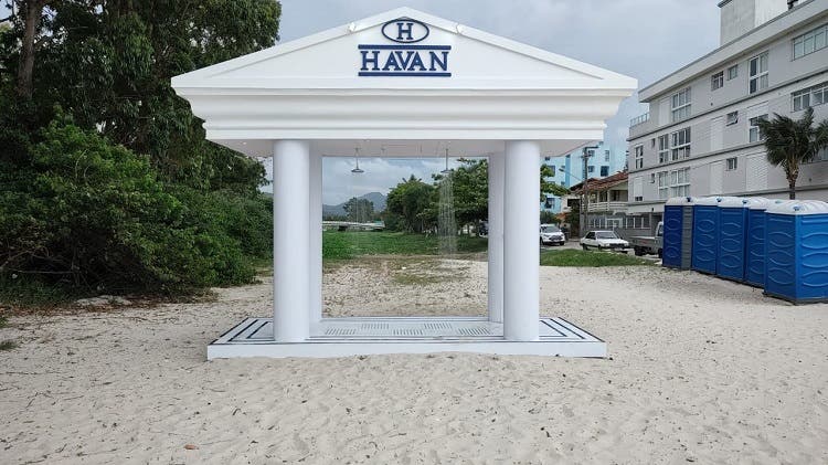 3. Chuveiro da Havan em praia de Florianópolis chama atenção pela cafonice