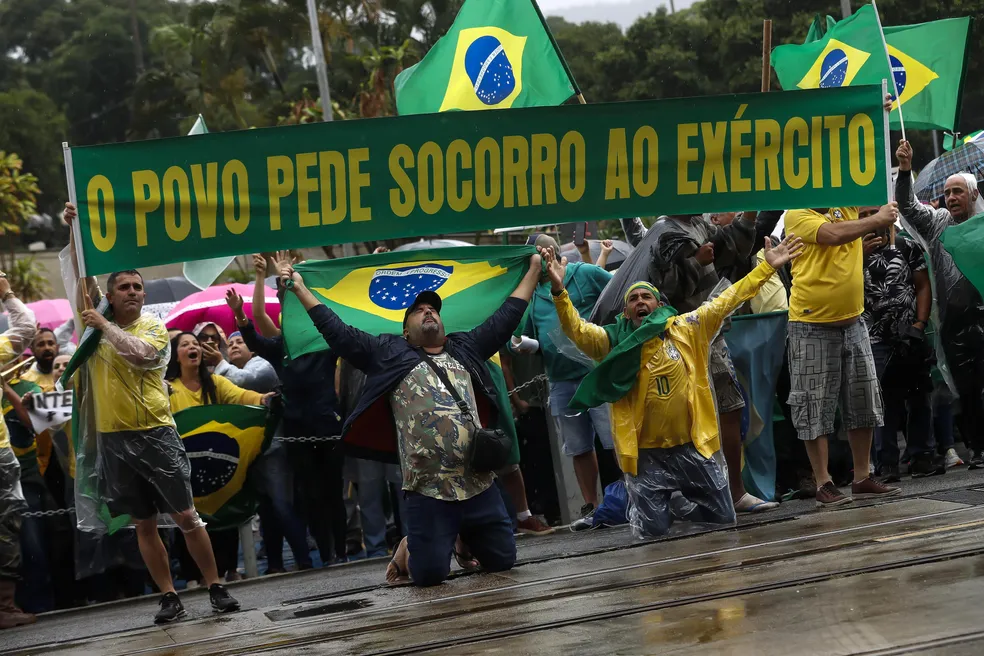 “Estabelecemos também o dia 8/12/2022 como prazo máximo para que o Presidente da República e Forças Armadas se manifestem na direção de restabelecer a harmonia e independência entre os poderes punindo aqueles que deliberada e recorrentemente vem violando a nossa constituição a olhos vistos”, diz um dos autores que lê o manifesto.