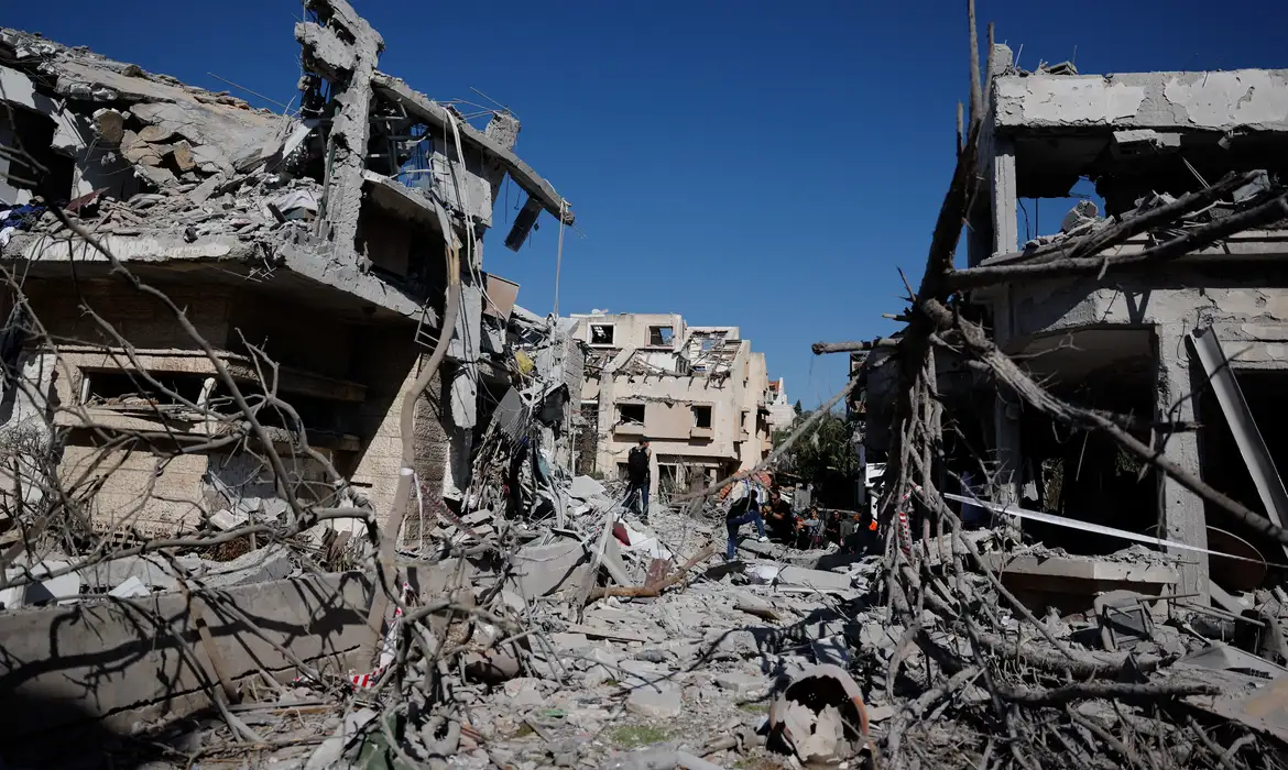 Prédio destruído em Teerã. Foto: Ammar Awad/Reuters