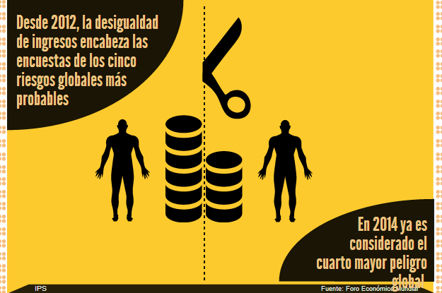 Desde 2012 a desigualdade de renda lidera as pesquisas dos cinco riscos globais mais prováveis. Em 2014 já é considerado o quarto maior perigo