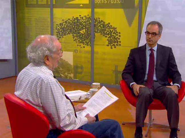 A entrevista já começa torta. Dines pergunta se a Globo não sente falta de concorrência.