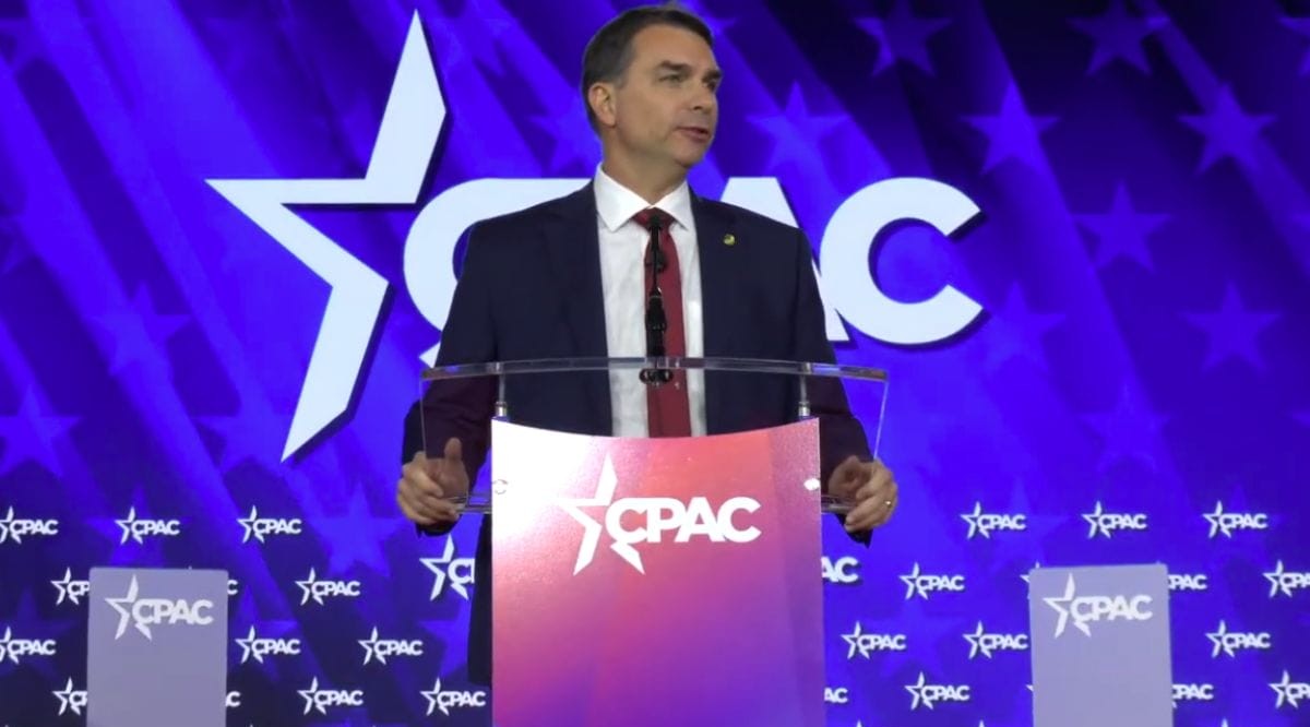 O senador Flávio Bolsonaro durante discurso no CPAC. Foto: Divulgação