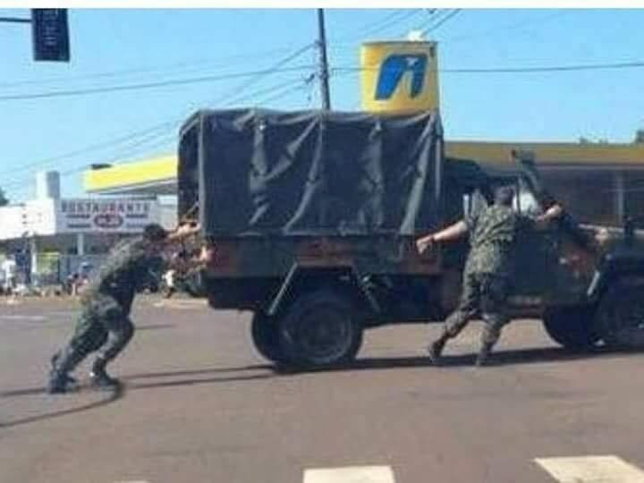 Algo muito estranho, ou nem tanto, já que há inúmeras faixas pedindo justamente “intervenção militar”.