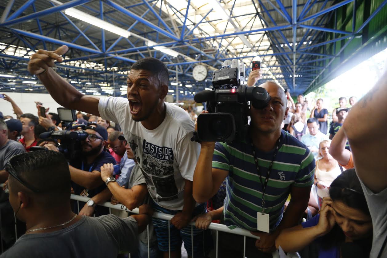 As mãos deles agarravam com força as grades que os seguranças do metrô e os policiais civis colocaram para isolar a delegacia e ao solta-las, era possível observar as mãos tremendo, nervosamente.