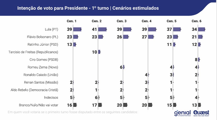 Não é possível estabelecer quem ocupa a segunda posição real sem comparar desempenhos equivalentes. Isso pressupõe cenários em que cada nome da extrema-direita dispute isoladamente contra Lula, sem a presença constante de um concorrente favorecido. A Quaest escolhe não fazê-lo.