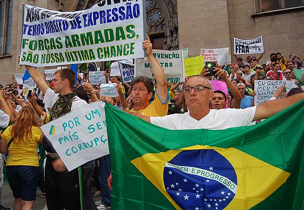 Pois foi unânime o pedido de intervenção militar já. E demais pautas típicas. Contra a corrupção, fora PT, fora Dilma, Lula na cadeia, cadeira elétrica aos mensaleiros.