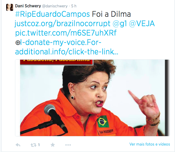 Um pastor chamado Daniel Vieira, de um certo Congresso dos Gideões Missionários da Última Hora, ligado a Silas Malafaia, cravou nas redes sociais: “Morre Eduardo Campos, candidato a presidente. Hoje são 13 [sic], numero do PT. Deveria ter levado a DILMA!”. Apagou em seguida, com um pedido de desculpas ignóbil.