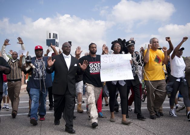Três dias após a morte de Michael Brown, o jovem negro desarmado que morreu após ser baleado por um policial, a tensão racial continua nas ruas de Ferguson. Na terça-feira, pela quarta noite consecutiva, centenas de pessoas protestaram contra a morte de Brown, pedindo “justiça” e entrando em confronto com a polícia.