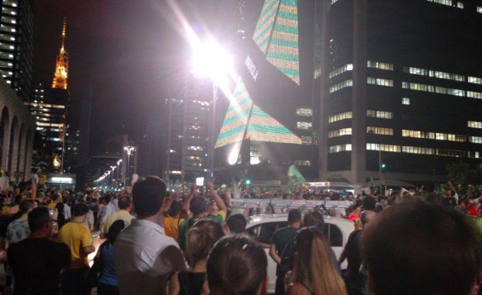 Bastou Moro vazar um grampo para a Globo para seus soldados fecharem a Paulista numa quarta-feira. Só que sem sinal de borrachada da Polícia Militar, como acontece nos protestos de estudantes.