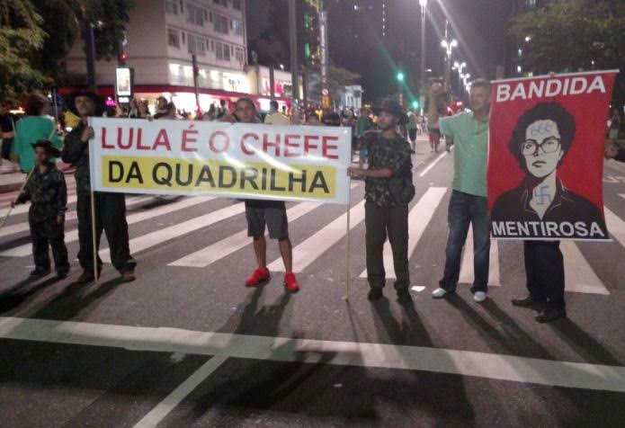 Às 22hrs, ergueram o Lula Inflado no cruzamento da Paulista com a Pamplona, quase no mesmo local em que os Revoltados On-Line protestaram no dia 13. A manifestação prosseguiu até a madrugada, regada a cerveja, pipoca, hot-dogs e até fogos de artifício disparados na frente do MASP.
