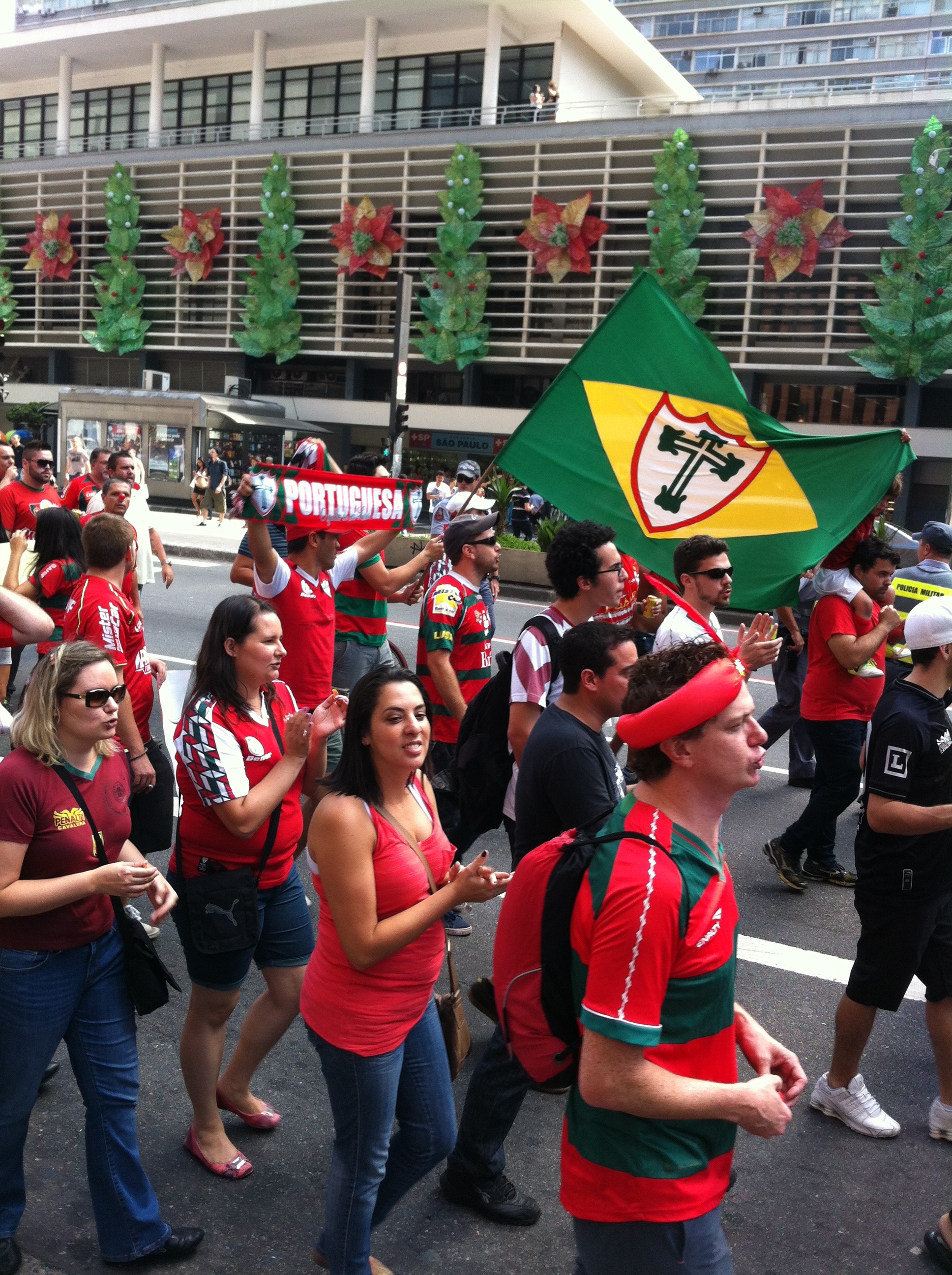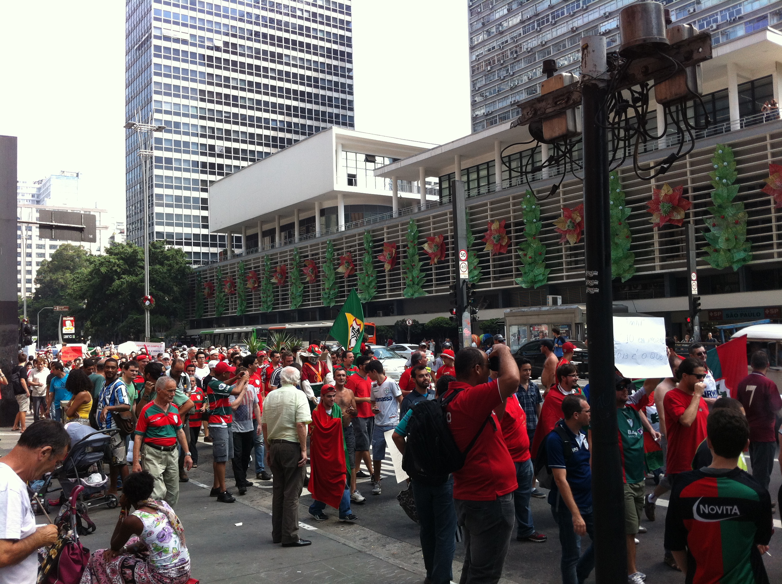 Hoje, na Paulista, havia uma manifestação de torcedores contra a ameaça de rebaixamento. “Ô, Fluminense, vai se foder/Está na hora de pagar a série B”, umas 200 pessoas gritavam. Deram uma volta na praça que fica no final da avenida, quase na Consolação, e retornaram. Tudo numa boa. Mais ordeiro que os protestos do Cansei.
