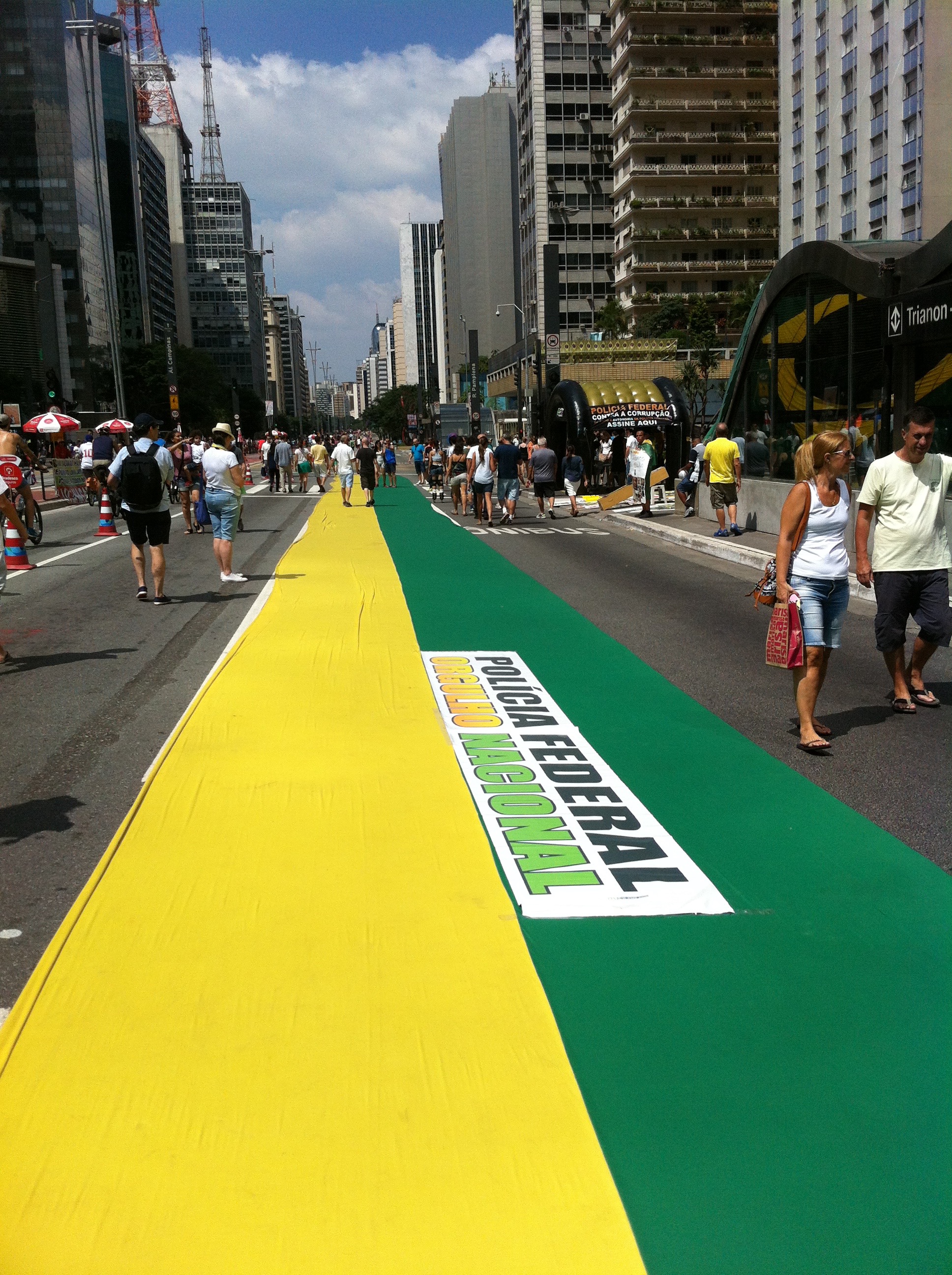 Questionei também sobre os panos verdes e amarelos que são estendidos na calçada pública junto dos acampamentos. Nada que impeça o trânsito de pedestres ou de carros está fora da regularidade.