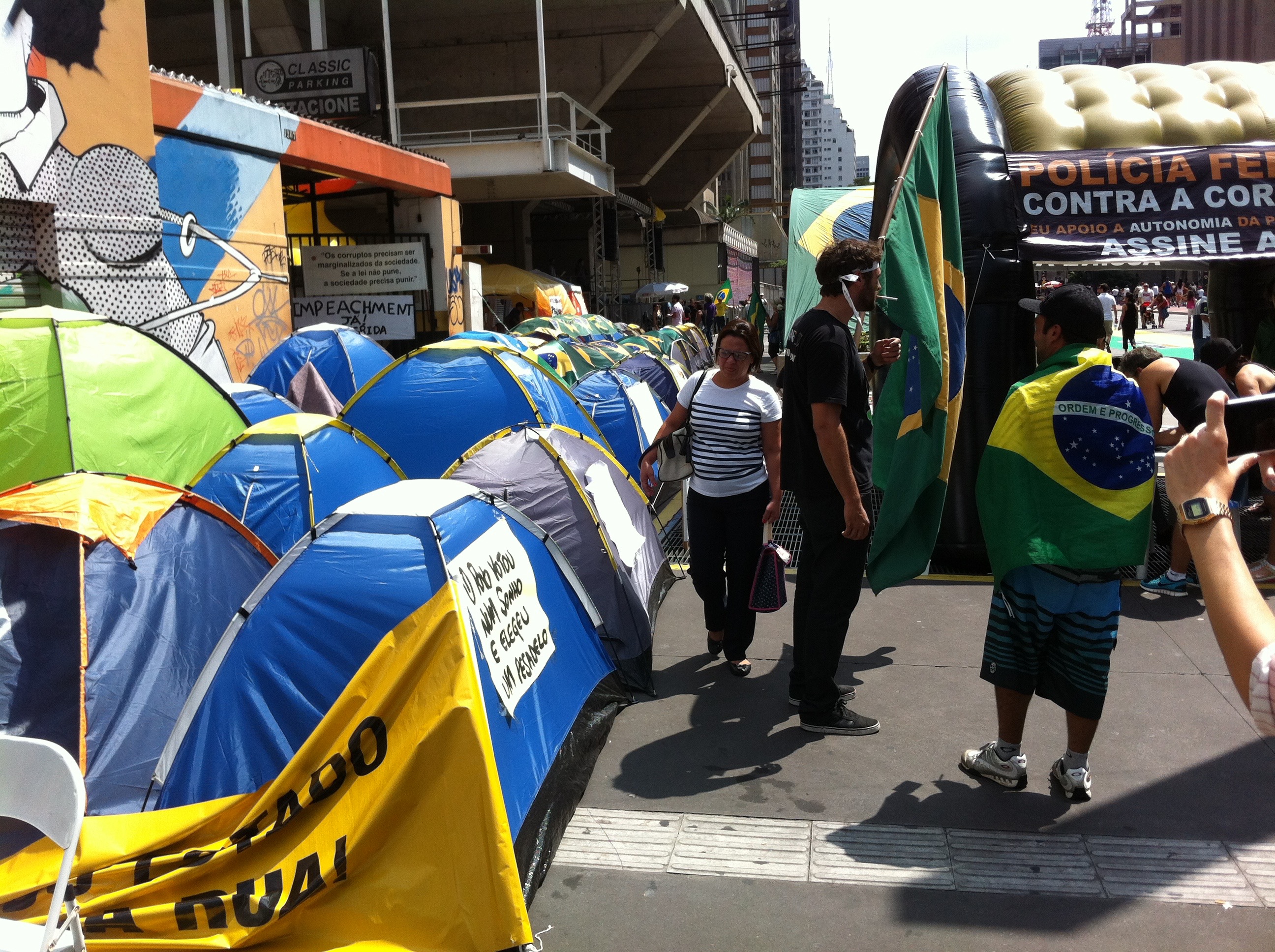 Os protestos na frente da federação chefiada por Paulo Skaf começaram em março, com direito a Tropa de Choque da PM dispersando os manifestantes depois que eles fecharam a Paulista por dois dias. Eles foram expulsos com jatos d’água e voltaram em menor número para acampar na calçada. Estão lá há mais de um mês.