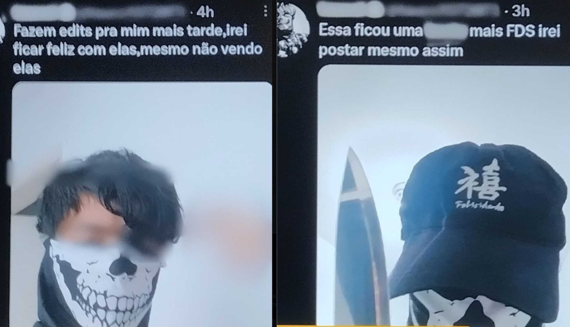 “Fazem edits pra mim mais tarde, irei ficar feliz com eles, mesmo não vendo elas”, escreveu o aluno no dia do crime. “Umas 6:50 já tô fazendo o acontecido provavelmente”, publicou.