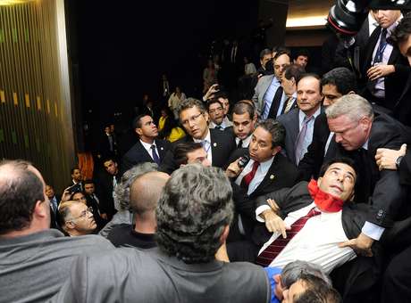 Renan Calheiros convocou a polícia legislativa para retirar aquelas pessoas. Políticos da oposição fizeram uma espécie de “cordão de isolamento” para protegê-las.