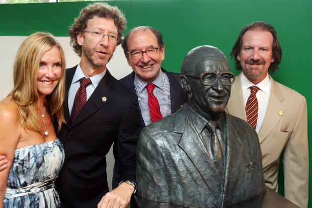 Roberto Civita (centro) entre os filhos e diante do busto do fundador Victor, removido do edifício