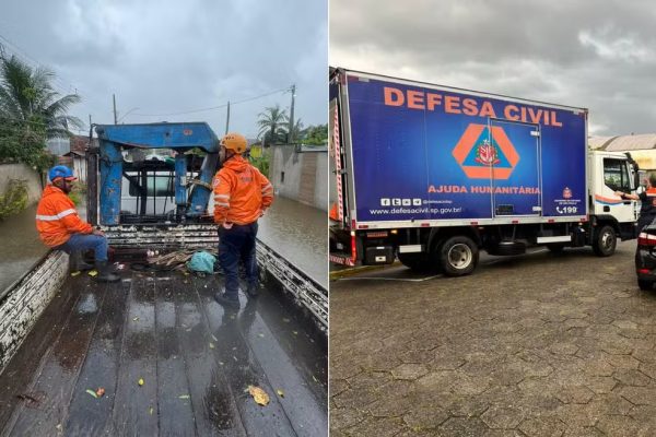 Os volumes de chuva foram elevados. Em 48 horas, Peruíbe registrou 271 milímetros. Em Ubatuba, o acumulado desde sábado chegou a 290 milímetros, próximo à média histórica de todo o mês de fevereiro. Em 24 horas, Peruíbe marcou 185 mm e Ubatuba, 157 mm, segundo a Defesa Civil.