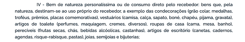 Há exceções para os “itens de natureza personalíssima”. Como exemplo, o TCU citou “medalhas personalizadas, bonés, camisetas, gravata, chinelo e perfumes”. Para que um presidente possa ficar com o material, é preciso que seja algo pessoal e que tenha um valor baixo.