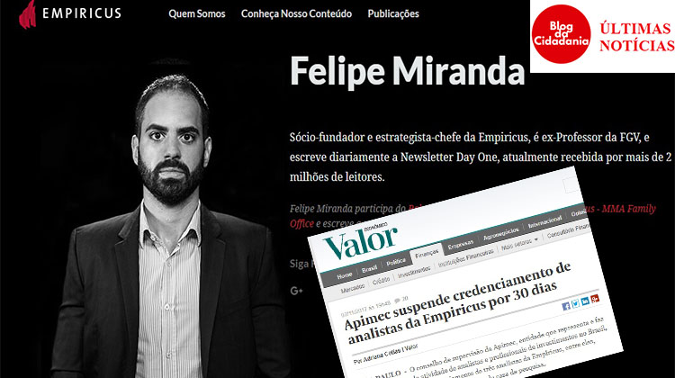“Os anúncios pagos pela Empiricus no Google e Facebook utilizam como estratégias de promoção e de atração de clientes ataques a governos de esquerda e outras provocações políticas. Entre os exemplos de promoção do antipetismo constatados na eleição presidencial de 2014 estavam ‘Se proteja se a Dilma ganhar’ e ‘E se o Aécio Neves ganhar? Que ações devem subir se o Aécio ganhar a eleição?'”, apontou o Le Monde Diplomatique numa matéria.