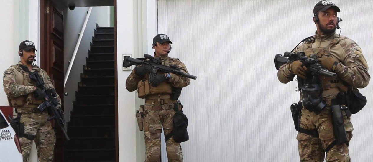O idiota previsível soltava rojões com as imagens de homens de metralhadora cumprindo a ordem de condução coercitiva para levar Lula a depor em Congonhas.