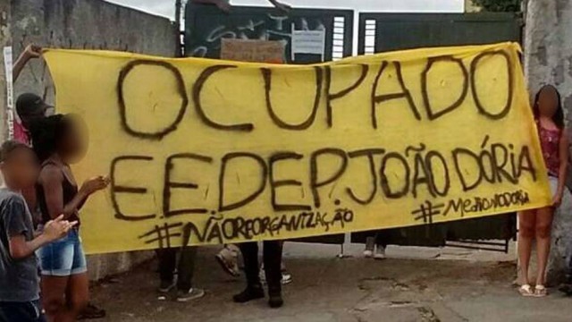 A Escola Estadual Deputado João Doria fica no Itaim Paulista, extremo leste da cidade. Durante o período das ocupações realizadas por secundaristas no final de 2015, aquela escola foi um dos locais mais degradados que visitei. Instalações precárias, reboco do teto caindo, banheiros inutilizáveis, quadra esportiva esburacada e sem nenhum equipamento.