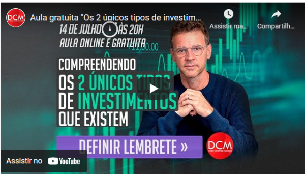 Ao Vivo: Aula gratuita “Os 2 únicos tipos de investimento” Publicado por Fernando Miller - Atualizado em 14 de julho de 2022 às 20:10 Apoie o DCM Mais uma aula imperdível com Eduardo Moreira. Chame a turma e assista ao vivo porque não fica gravada. Participe de nossos canais e nos siga nas redes sociais: