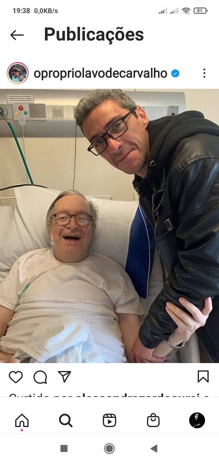 De acordo com último boletim médico, Olavo tem condição estável. Foi diagnosticado com insuficiência cardíaca e renal aguda e infecção sistêmica.