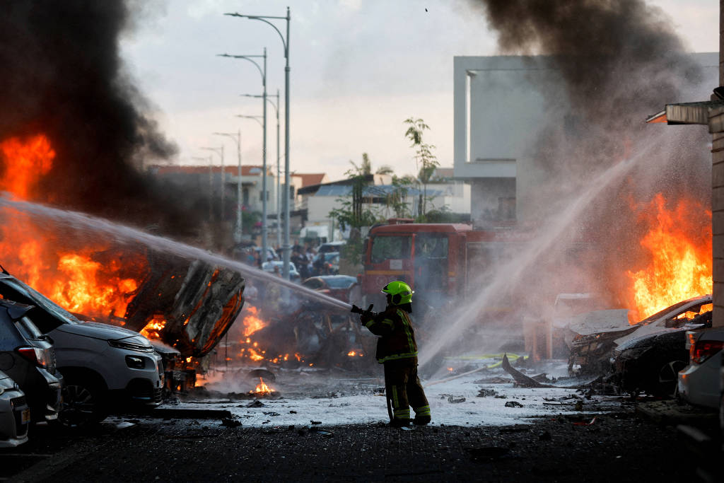 Bombeiro apaga incêndios na cidade de Ashkelon, em Israel. Foto: Amir Cohen/Reuters